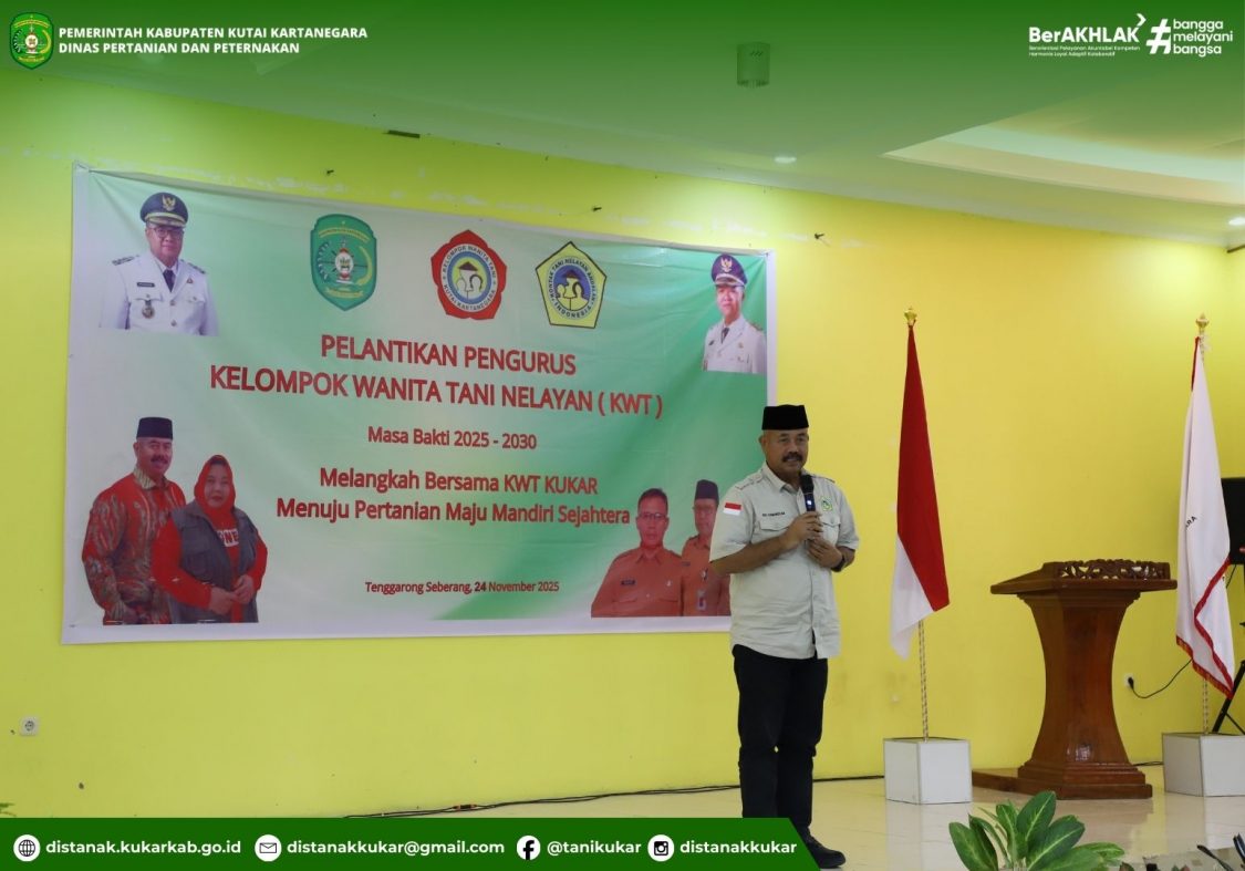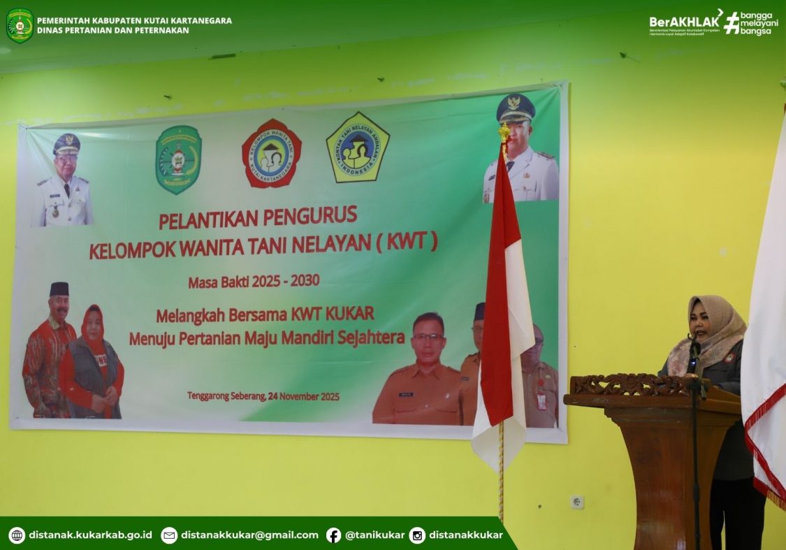 TENGGARONG – Bupati Kutai Kartanegara, dr. Aulia Rahman Basri, resmi mengukuhkan Ketua Umum beserta jajaran Pengurus Kelompok Wanita Tani Nelayan (KWT) Kabupaten Kukar untuk periode 2025–2030. Prosesi pelantikan berlangsung di Gedung Taman Teknologi Pertanian (TTP) Desa Bangun Rejo, Kecamatan Tenggarong Seberang, pada Senin, 24 November 2025.